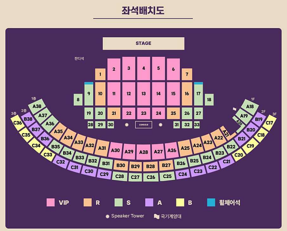 ※ 유의사항: 3층 객석은 등받이가 없고 단차가 높아 예매시 유의해야하고 우천속 공연이 지속될 경우, 설치물로 인해 일부 구역 시야방해가 될 수 있다. 공연 당일 야구 경기 개최 예정으로 상당수의 관람객 차량 및 행사 운영 차량 등으로 인해 주차공간이 매우 협소하며 인근 지역의 교통홉잡이 예상된다. 반드시 대중교통을 이용하시기를 당부드린다.