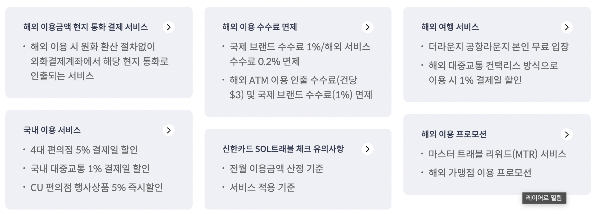 -높은 한도 -긴급 상황 대처용이 -각종 여행 보험 혜택 |